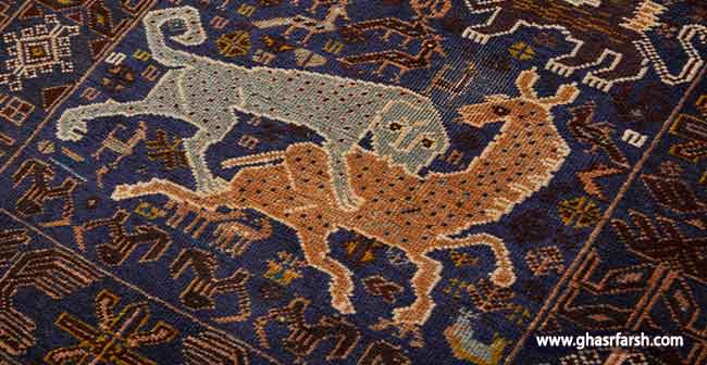 سوال: چه نوع نقوشی در فرشهای شکارگاه مشاهده میشود؟