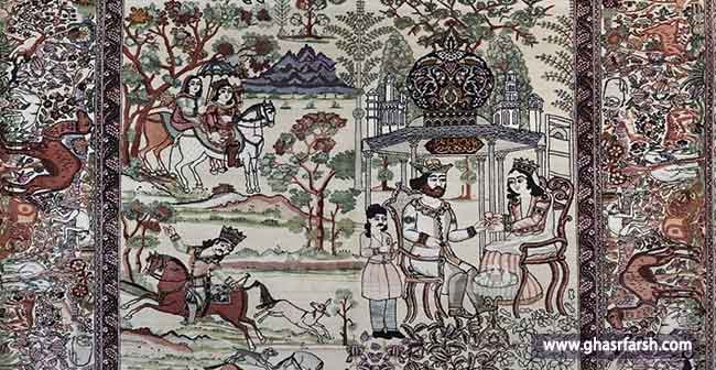 5. صحنههای تاریخی و افسانهای: بعضی از فرشها تصاویری از صحنههای تاریخی و افسانهای را به تصویر میکشند. این تصاویر ممکن است شامل نبرد و رزمهای تاریخی باشند و نیز میتوانند افسانهها و داستانهای قدیمی را روایت کنند.